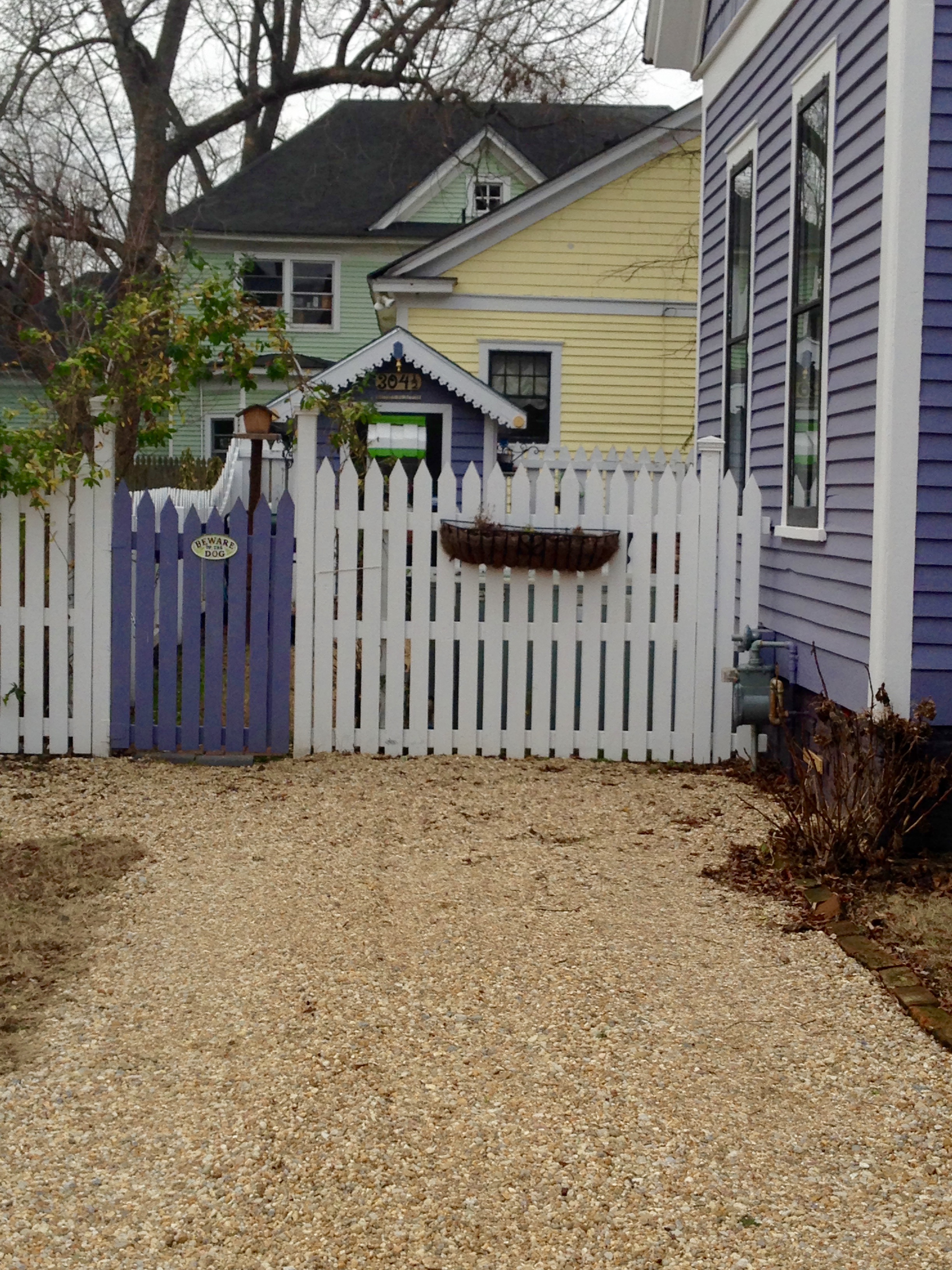 This view up the drive is one of my favorite scenes in Villa Place. The Borrowed View (a gardeners term) shares the painted beauties beyond. It reminds me of the colors in a pencil box.