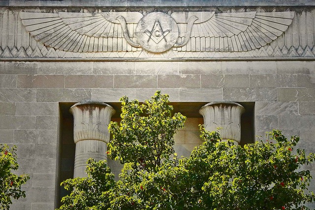 The Masonic Temple building is significant and is the only example we have of  The Egyptian Revival Period that flourished during the period 1820-1850. It made a comeback during the 1920s with the Art Deco style and the fascination with the discovery of King Tutankhamen’s tomb in 1922. The Egyptian Revival was popular in American decorative arts throughout the nineteenth century, continuing into the 1920s. The major motifs of Egyptian art, such as obelisks, hieroglyphs, the sphinx, and pyramids, were used in various artistic media, including architecture, furniture, ceramics, silver and fashion. The style was used in public and educational buildings; churches; cemetery entrances, memorials; but in very few homes.