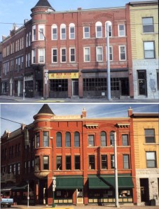 I have sought out Amy Facca again who is a historic preservation planner, architectural historian, and grant writer with a strong interest in economic development. In Oct. 2013 she wrote an informative piece about various emerging facade improvement programs that benefit communities. These are incentive programs created to encourage the restoration of the exterior appearance of buildings and storefronts. Improvements like masonry repairs & pointing; facade painting, repair, reconstruction or replacement of historic features; awnings, signage and exterior lighting, gutters, and downspouts; window & door repair or replacement.