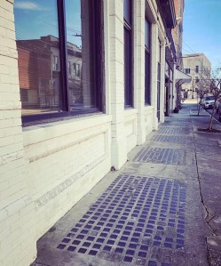 Glass blocks lining the sidewalk are not only beautiful and one of a kind in Rocky Mount, but they also allowed light to enter the basement for liquor production during prohibition. Kevin says this is something to think on – and sit above – as we share a cup of coffee outside. Don’t you think it would be ‘way cool’ to have a prohibition party once a year with appropriate clothing and music? Our coffee will be laced with the new friendships Kevin is serving.