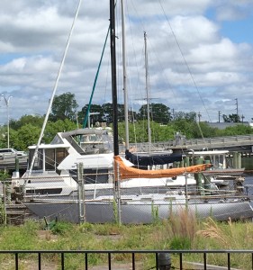to Elizabeth City, N.C. a community named one of the “100 Best Small Towns in America.” Situated in the northeastern corner of North Carolina on the Pasquotank River and Intracoastal Waterway, the City lies just west of the Outer Banks of North Carolina and just south of Hampton Roads, Virginia. Rich in history, saving their sense of place and the story of their people is evident everywhere. They have protected and cherished what has been left to them. The preservation and restoration of their downtown and adjacent areas is cause for great admiration and celebration. I had some time by myself on a bench. A breeze blows your hair askew and a noticeable fragrance hangs in the air from scented bushes, climbing Jasmine, and roses. The quiet is filled with a sense of timelessness. You dare not move knowing this