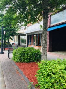 If only my photos did these storefronts justice because each one is a little jewel box. You see the address of 114 on the lavender building. The details on these facades are worth a trip downtown to see. If you’re following Main Street on Facebook you have seen the drawings on the various types of window/entries in order to recognize and identify what our Main Street facades have. We are fortunate to have this incredible architectural inventory and the emerging new Main Street symphony of pounding hammers, the crash of deterioration coming down, the chatter of men putting in new windows: I wouldn’t miss it for the world. Don’t you either. SFH