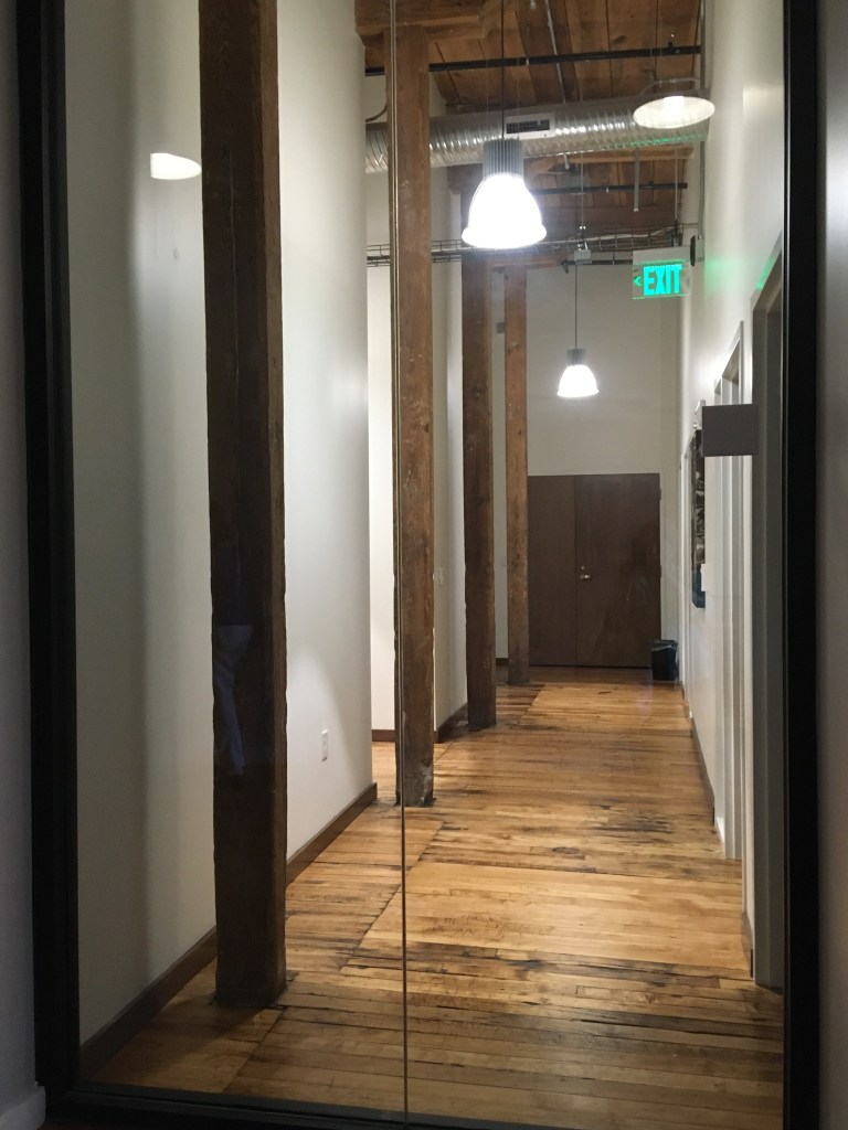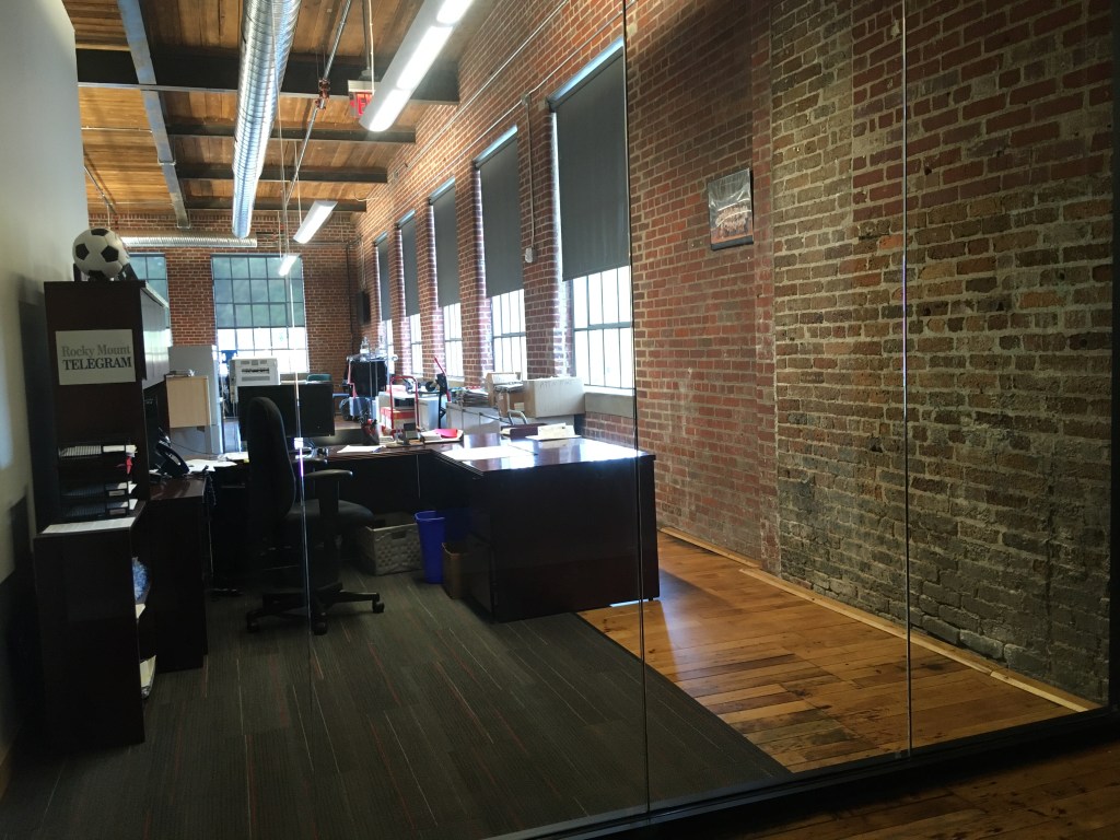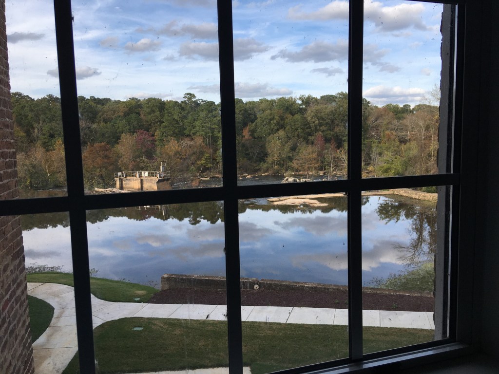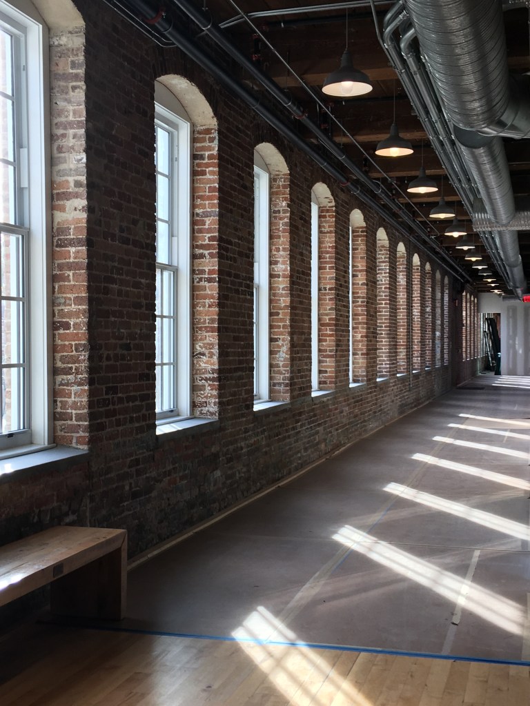 The first time I went to Rocky Mount Mills I met Eddie Belk, a man with a gleam in his eye. I looked the word, gleam, up and found one of the definitions that suited Eddie to a tee: a facial expression that denotes happiness, amusement, or knowledge of a secret. This expression was about Rocky Mount Mills. Eddie is an Architect/Engineer: G. Edwin Belk Architects. (At that time David Cera was the project architect) Eddie is an architect with a passion for preservation, restoration, and repurposing as evidenced throughout the mill. I’m sorry my iPhone camera can’t do justice to the art and beauty that has been recreated.