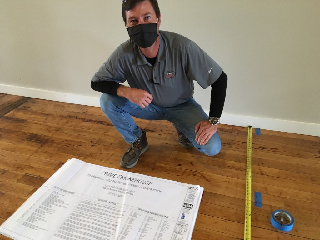 You know me well enough to know that I expect to find good things and therefore, I do. Meet Ryan Boone, Commercial 1 Construction. Look at the plans on the floor for Prime Smokehouse.  It’s underway and I got a peek in the door where the kitchen will be. Along with Ryan there was Dexter Park, Project Mgr. Just clone these two extroverted, happy, friendly guys and the world will be better for it. They love what they are doing, and the place where they are creating a new space.  Seems to me Ryan and Dexter are cut out of the same architecture world as Eddie Belk; they show their happiness, amusement, and have knowledge of a secret that is coming true soon.