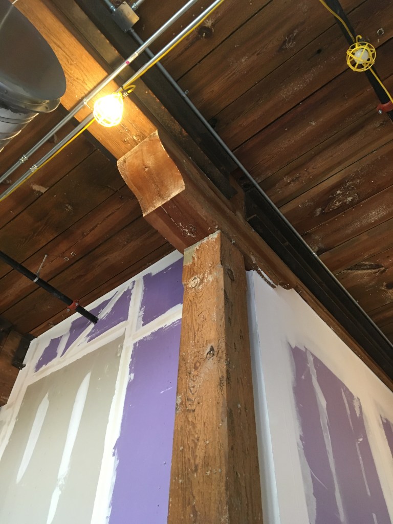 An original brace surrounded by sheet rock-Don’t miss the ceiling