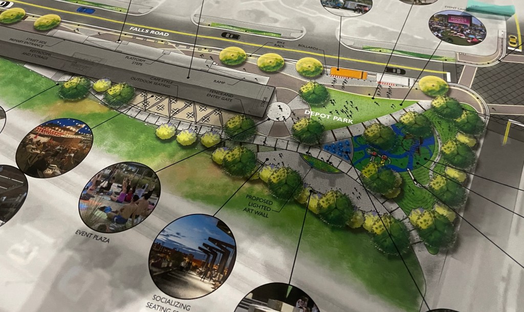View a section of the Falls Road Streetscape and Depot Park Concept Plan!