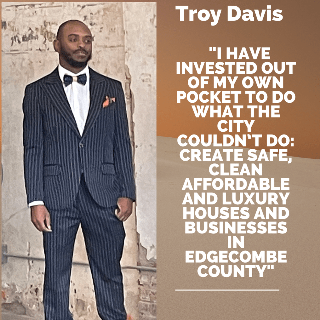 Troy Davis can win this race. He is known, he is visible all over Ward 1, he is liked, and his high energy propels him forward each day. Ben Braddock once told me, “Troy does good work.” That changed my willingness to take Troy seriously and has since convinced me that through his projects, it is the people of Rocky Mount he seeks to serve. People are DONE with Knight, his behavior, his false narratives that have become unexamined ideas. He looks on the world through racial glasses that dominate his thinking. The power he has garnered has everything to do with him and little to do with improving the life of his constituents. I wrote a few blogs ago that Knight has lost the room. A recent vote on the Council of 5-2 (Knight & Blackwell voting yes) is proof that those on council can form a coalition when necessary to do what is best for those they represent.