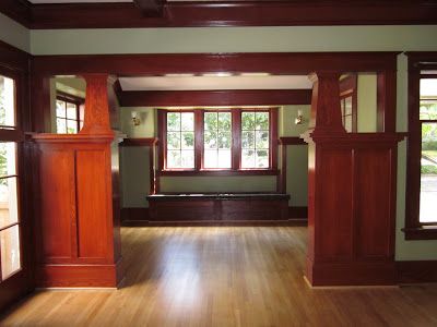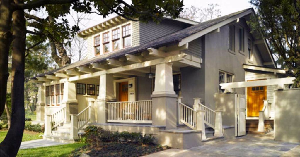 Most bungalow homes have a large, central living space that’s surrounded by smaller rooms. These living spaces often feature elements of woodworking, like built-in cabinets, exposed beams, and wainscoting.