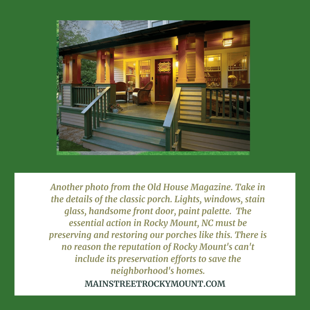 Bungalow style homes are scattered throughout our neighborhoods. They are jewels in Rocky Mount’s crown. That is if you can see the possibilities in whatever state you find a house in. I hope the examples I include from my bungalow photo collection make you feel pride in what you have, are inspiration to buy and save one for your own home, to restore one and put it on the market. Rocky Mount bungalows contribute a significant architectural asset to Rocky Mount’s housing inventory. The preservation and restoration of these homes should become a housing priority that will honor Rocky Mount’s past while building a future. If only the Real Estate agencies would help market these great homes to clients for their many apparent charms or imagine with them what can be.