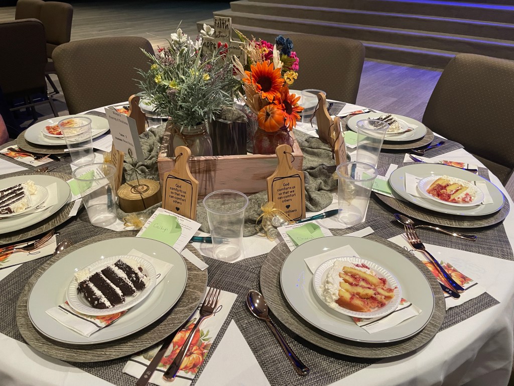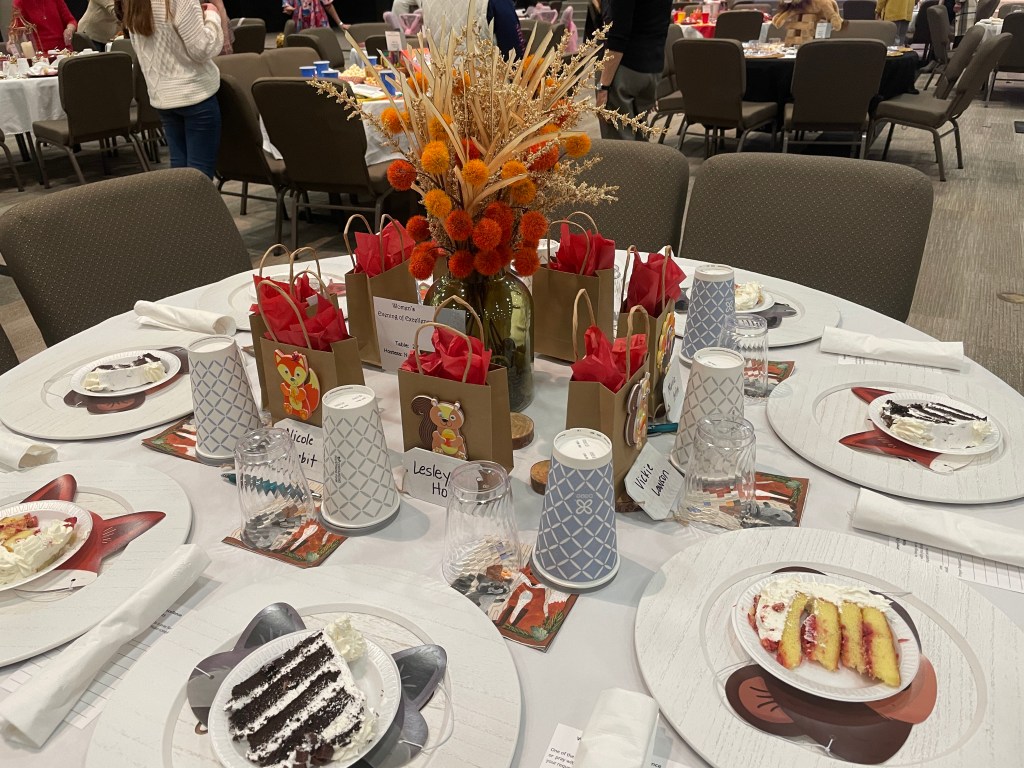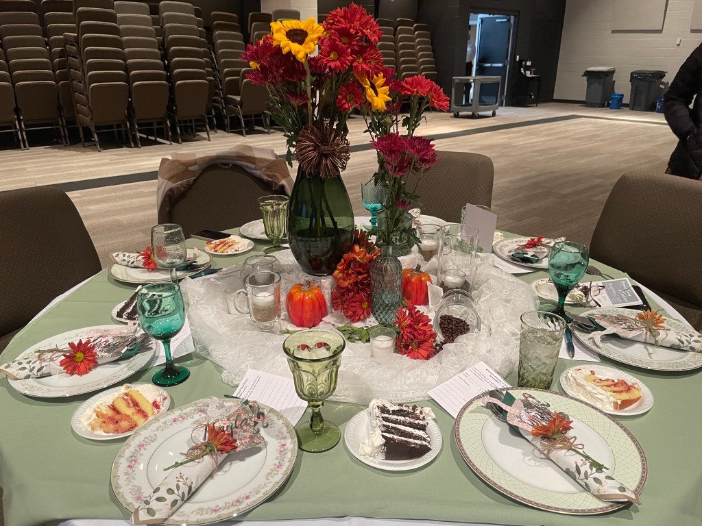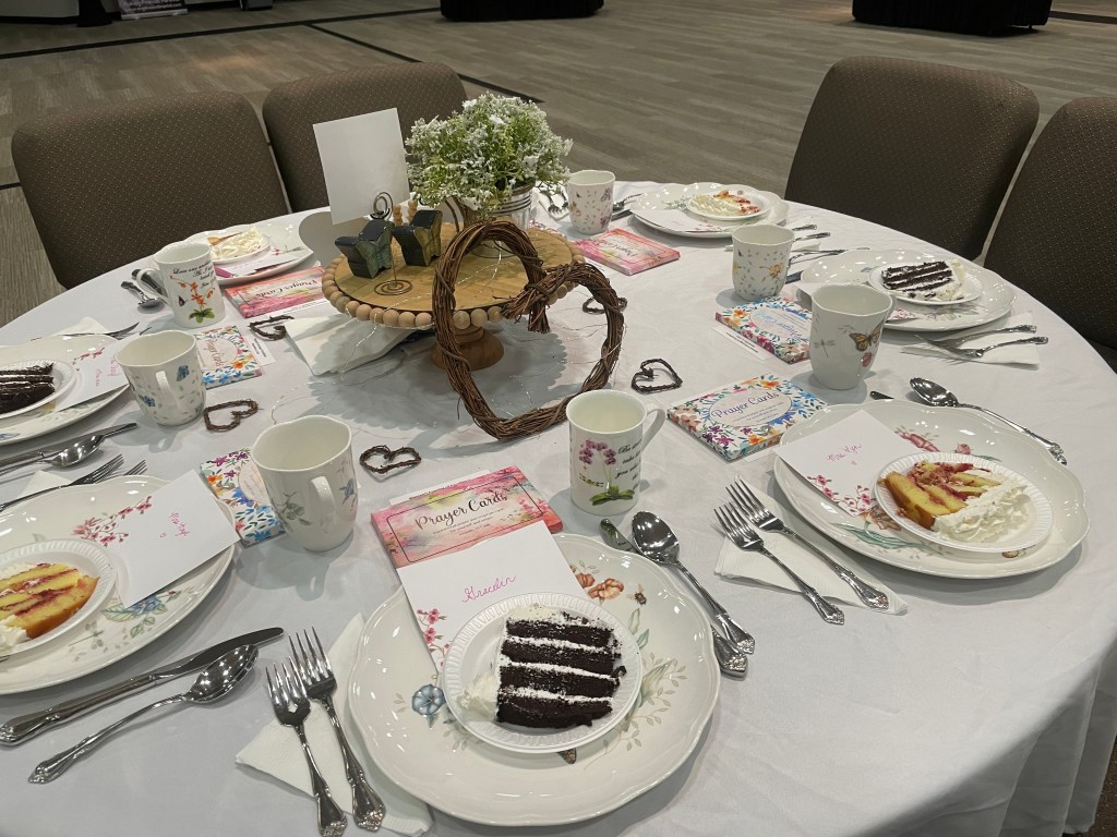 One of my passions is china, flower arranging/ table top designs. Englewood Baptist women out did themselves for this event. You will agree once you see the photos I took of the tables. (Photo on right: celebrating my birthday a few years back with Denise)