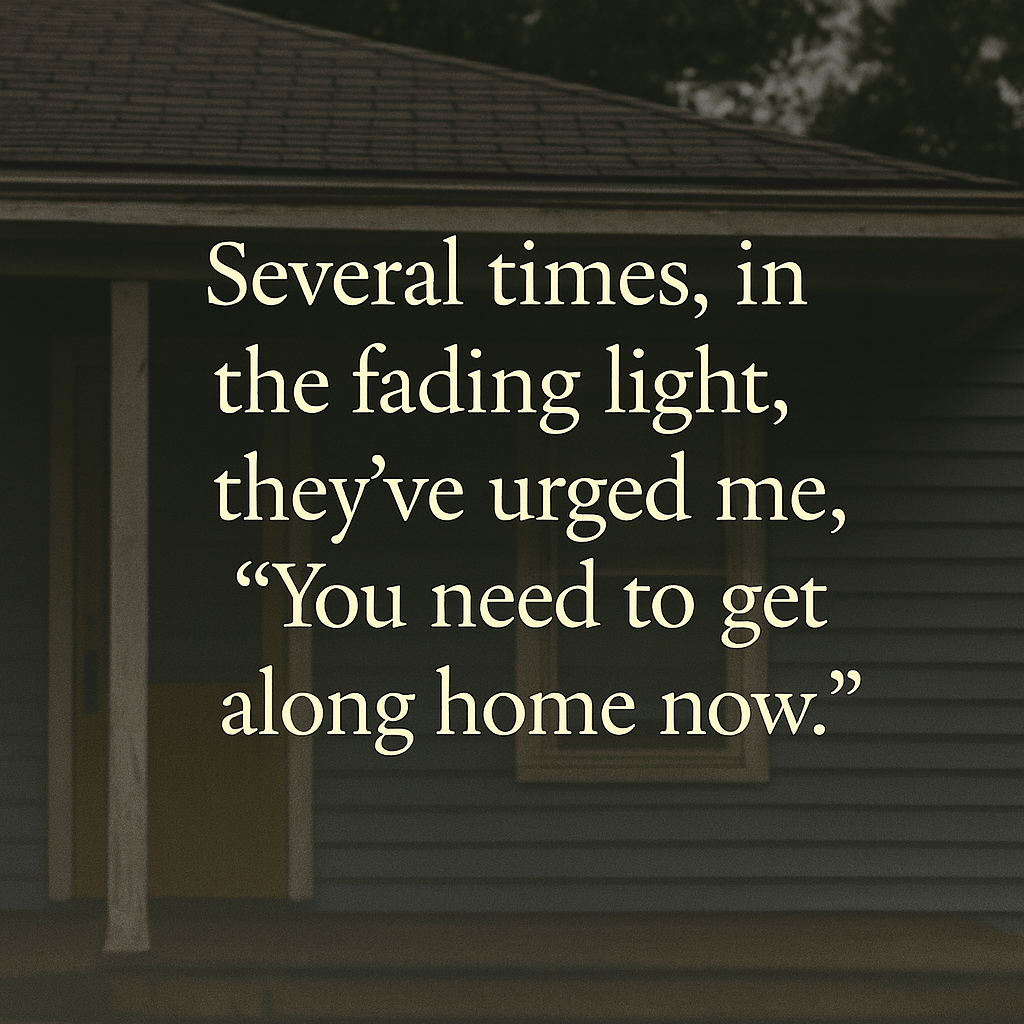 Another time, as the light faded, several women I was talking with told me, “You need to get along home now.”