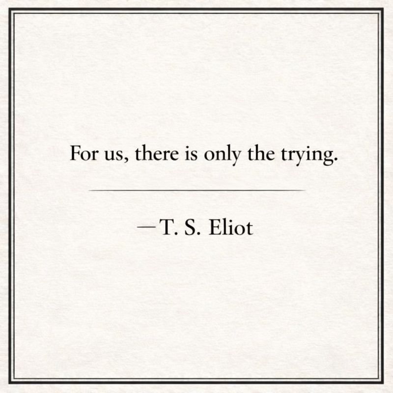 That question has been shaped, in part, by a line from the poet T. S. Eliot. “For us,” he wrote, “there is only the trying.”