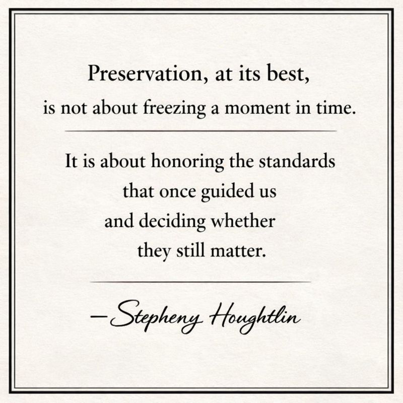 Preservation, at its best, is not about freezing a moment in time. It is about honoring the standards that once guided us and deciding whether they still matter.