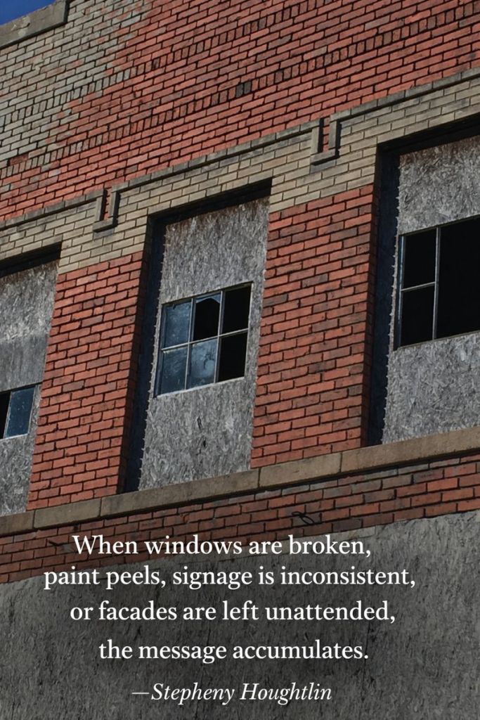 When windows are broken, paint peels, signage is inconsistent, or facades are left unattended, the message accumulates.