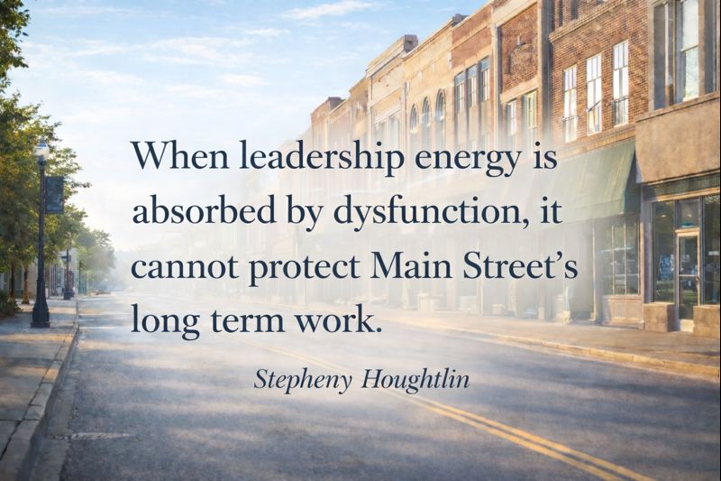 A forensic audit, broken water billing systems, and persistent governance turmoil do not exist on the margins of civic life. They consume the capacity required for steady stewardship. When leadership energy is absorbed by dysfunction, it cannot protect long term work.