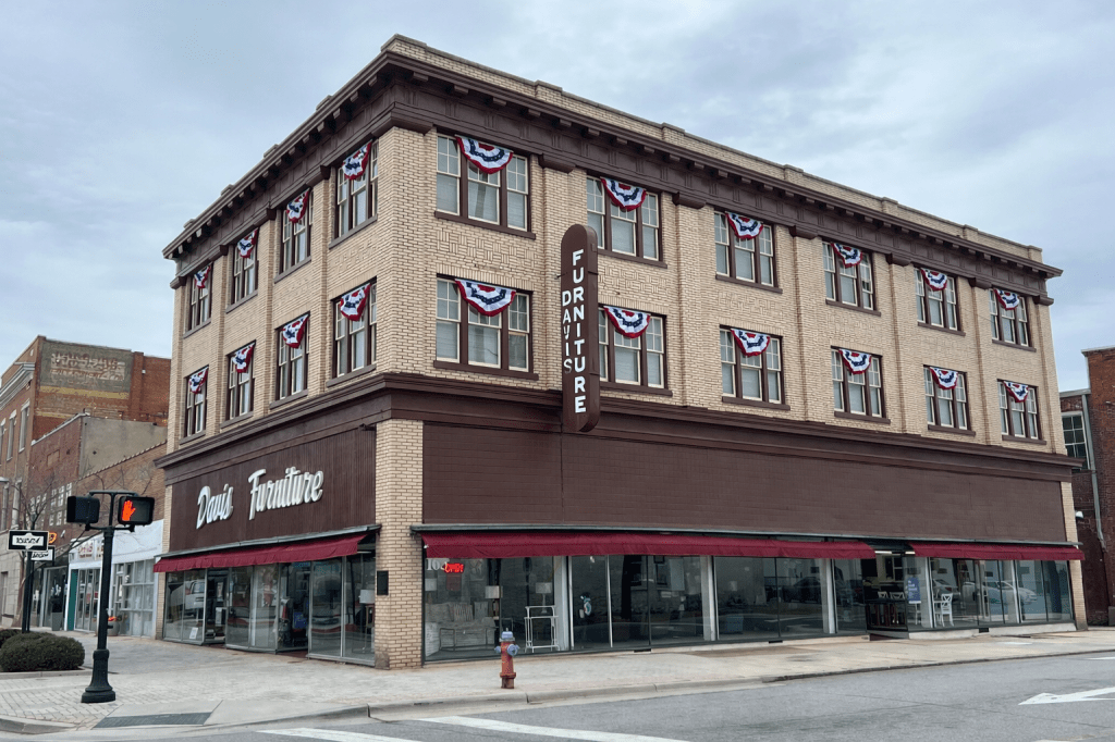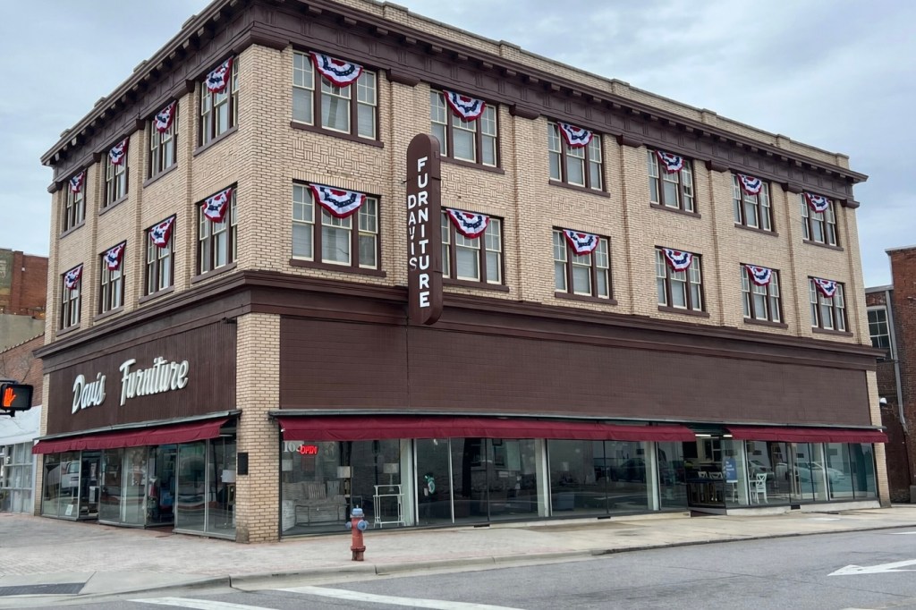 Davis Furniture Company has carried that language forward into the present day. Founded as a family business in 1989, the company became part of this building’s story in 1994, when Doug Davis purchased the property and established Davis Furniture in this Main Street location.