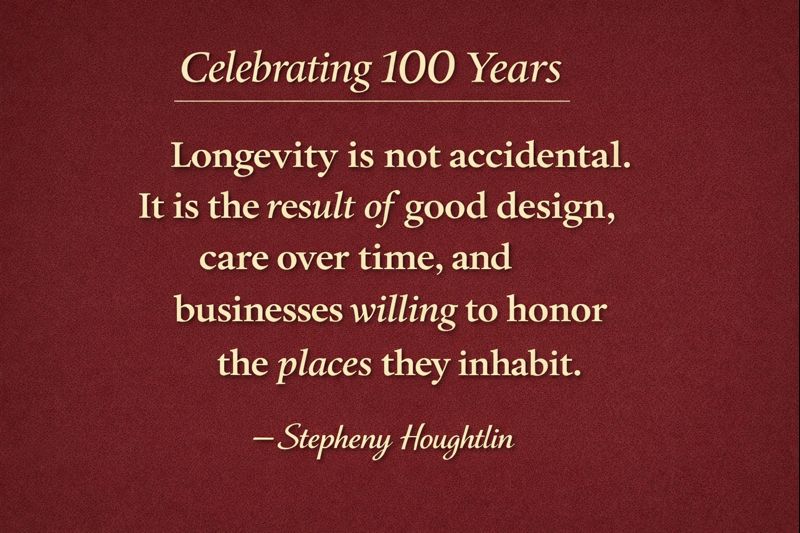 This year, 2026, as this building celebrates one hundred years on Main Street, it stands as a reminder that longevity is not accidental. It is the result of good design, care over time, and businesses willing to honor the places they inhabit.