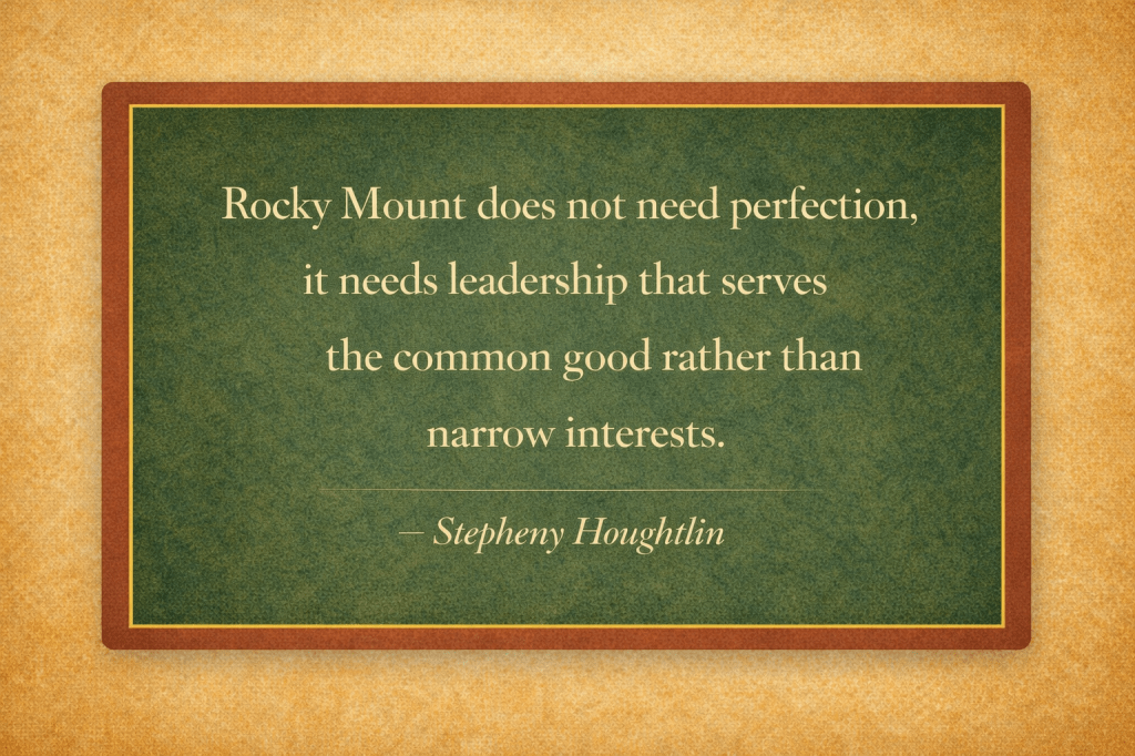 The measure of leadership has never been perfection, that is not the issue facing Rocky Mount. What is at stake is whether the future this community is trying to build can move forward when leadership serves narrow interests rather than the common good, and whether citizens are willing to reconsider how that leadership is chosen.