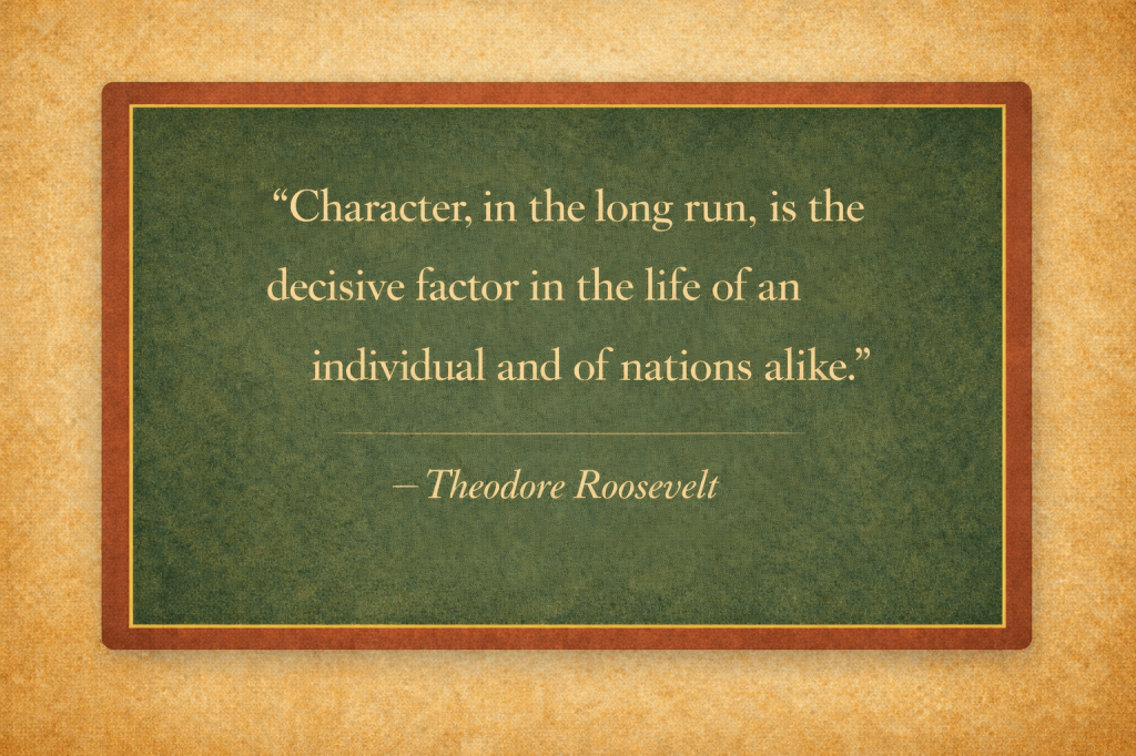Reading about Teddy Roosevelt has reminded me that leadership begins as character, as preparation, as the discipline of men and women who believe they are responsible for more than their own advancement.